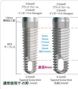 ミニインプラントとは、直径1.8mmのインプラントです(通常のインプラントは直径4mm〜5mm位の物を使用します。)それゆえに長期的には耐えられませんが、@本物のインプラントを利用する間の仮歯の軸として、A矯正のアンカー(固定源)として、B(抜歯即時埋入時どうしても埋入できなかった時に)本物を入れるための起始点として利用することで本物を埋入する処置が楽に(患者さんの負担が減少)なります。その使い道は様々です。